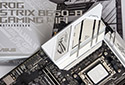 Система питания процессора у ASUS ROG STRIX B650-A GAMING WiFi, по словам производителя, реализована по схеме 12 (VCore) + 2 (SoC) + 1 (процессорная графика). Фактически же плата имеет не 12 полноценных фаз, а лишь шесть, объединенных попарно. То есть схема питания выглядит как 2 × 6 (VCore) + 2 (SoC) + 1 (процессорная графика).
