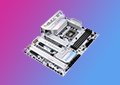 Дизайн Colorful iGame Z790D5 Ultra V20 очень необычный. С первого взгляда кажется, что плата белая, но на самом деле на свету она переливается разными цветами благодаря голографическим наклейкам на радиаторе VRM и чипсете.