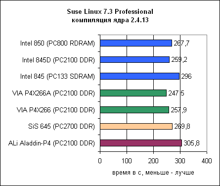 Полное поражение при компиляции Linux – последнее место. Результаты даже хуже i845 с SDRAM.