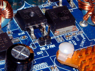 При этом кулер подключается непосредственно к материнской плате. Напомню, что отдельного разъема для кулера для северного моста нет, но на плате есть под него разводка.