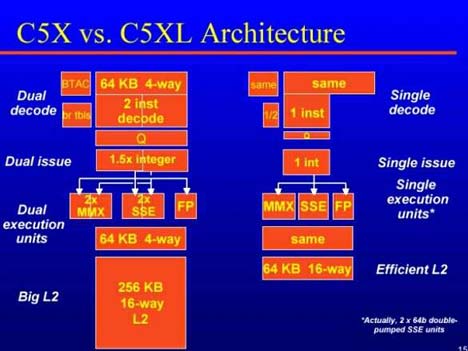 Новое ядро C5XL обладает обновленной микроархитектурой, в нем улучшен параллелизм на уровне инструкций, кэш L2 увеличен до 256 кб. Новый процессор все ещё будет совместим с Socket 370, и теперь компания выходит на OEM рынок в совершенно ином качестве - теперь она может поставлять сразу бюджетные чипсеты, материнские платы и процессоры.