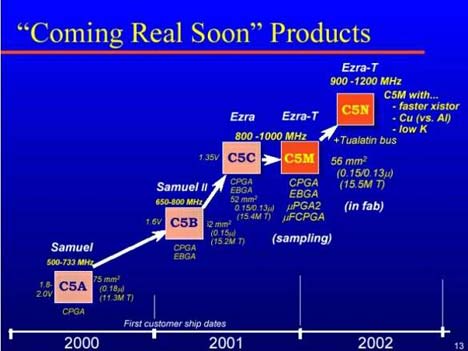 В новом году, Via может похвастаться Ezra-T с частотой 800-1000МГц, который к 2002 году будет работать на 900-1200МГц.