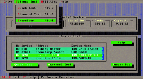 На материнской плате Asus K7M применяется южный мост VIA VT82C686A, который не поддерживает интерфейс Ultra ATA-100 (лишь Ultra ATA 66). Поэтому было решено использовать для тестирования IDE-контроллер Promise Ultra 100 ($51). Как уверяет сама компания-изготовитель в описании к устройству: "Promise Ultra 100 - первый в мире Ultra ATA 100 контроллер". Охотно верим, тем более, что на момент написания обзора, другого stand-alone контроллера мы просто не нашли. При помощи утилиты IBMATASW (версии 1.40) - мы выставляли последовательно режимы Ultra ATA 33, 66 и 100. Для проверки же физического состояния диска, воспользовались фирменной утилитой Drive Fitness Test (версия 1.52) от IBM - позволяющей протестировать накопитель на работоспособность узлов и определить S.M.A.R.T. статус (наш экземпляр рапортовал о своем статусе как Good).
