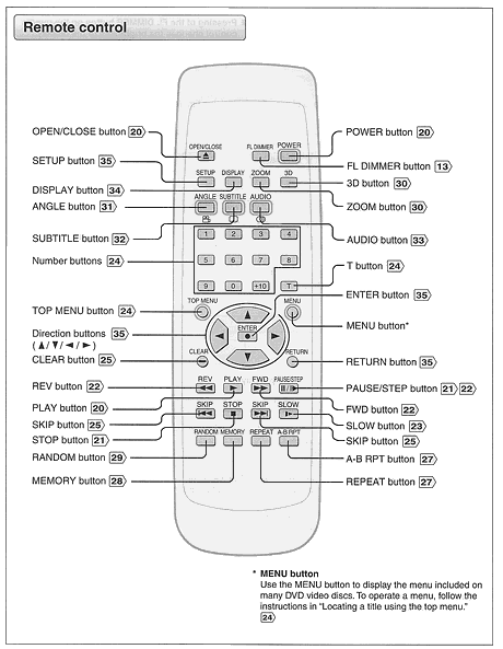 Лично мне не понравилось расположение кнопок на плеере и его балансировка. Пульт "хочет" постоянно упасть вперёд, когда держишь его в руках, и кнопки навигации по диску находятся в самом низу, что для меня не очень удобно (пальцы длинные). Через ДУ можно делать следующее (в скобках даны оригинальные подписи к кнопкам):