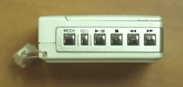 Плеер сделан из белого пластика, только часть торца, на которой расположились кнопки управления, серебристая. Верхняя "грань" может открываться, под ней скрывается довольно информативный дисплей, правда "слепой".