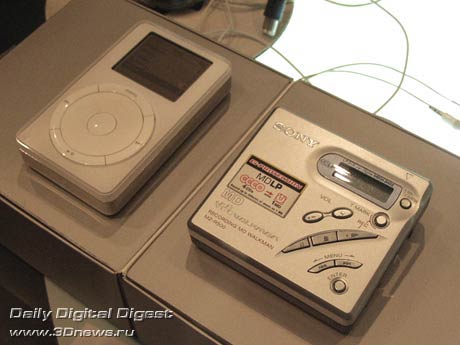 Слева Apple iPod, справа MD плейер Sony MZ-R500