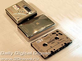 Под продвинутостью мы понимаем то, что плейер этот оснащён интерфейсом FireWire, по которому данные передаются значительно быстрее, нежели по USB, которым оснащается 99% цифровых плейеров. Кроме того, пишется музыка на сверх-компактный жесткий диск, имеющий размеры даже меньшие, нежели все HDD в аналогичных продуктах других компаний. В результате, Apple удалось сделать действительно компактный цифровой плейер. Сравните сами: