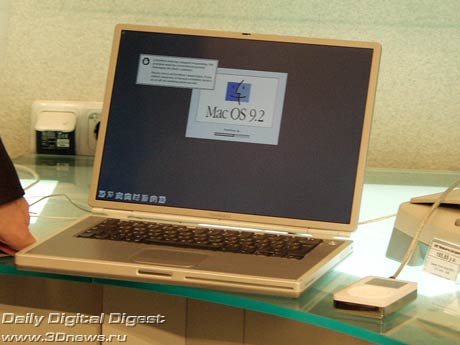 Ещё один плюс iPod, который пропагандирует Apple, это его возможность работы в режиме жесткого диска. С iPod можно загружать компьютер, на нём можно носить файлы, работать с цифровым видео, и делать вообще всё то, что и с обычным жёстким диском. Во время презентации нам было показано, как ноутбук загружается с iPod, и что случится, если во время загрузки диск отключить. Собственно, ничего страшного не произошло - система показала, что дисковый накопитель отключен, и ожидала его подключения обратно. Учитывая производительность FireWire, вы получаете ещё один нормальный жесткий диск.