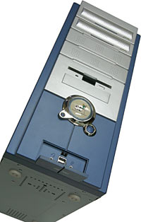Передняя панель корпуса весьма хороша за свои деньги. Здесь вы не получите дверок, закрывающих отсеки, зато спереди выделяются вертикальные хромированные направляющие, окантовывающие отсеки с приводами. Флоппи-дисковод здесь ничуть не труднее использовать, чем в ATX-6061, а клавиши питания или сброса в таком корпусе никогда не заклинят или не выстрелят в вас.