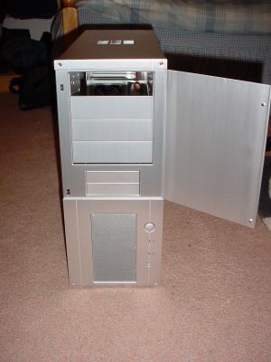 Рассматривая корпус, вы не обнаружите всех его возможностей. Этот корпус является самым красивым в серии Coolermaster. Передняя панель корпуса похожа на корпуса ATCS 200 и 201 с их решёточкой для вентиляторов и расположением кнопок, однако качество её несравнимо выше. Местами она сделана из алюминия толщиной 1 см, что делает её очень прочной. Корпус является разборным. На дверце есть маленькая символика Coolermaster, а в целом на передней панели больше ничто не нарушает гладкость линий.