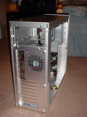 Попасть внутрь корпуса довольно просто. Боковые панели прикреплены двумя винтами с накатанной головкой. Однако возможно некоторым будет непросто достать панель, после того как она будет откручена. В ATCS 200 есть углубления на боковых панелях, благодаря которым их проще снять. Крепление для материнской платы съёмное, как и у всех корпусов Coolermaster, и опять же прикручено двумя винтами с накатанной головкой. Но оно прочнее, чем у других моделей Coolermaster, и выдержит большую нагрузку, что немаловажно в дни тяжёлых радиаторов и двухпроцессорных материнских плат. Само по себе крепление большое и на нем есть множество отверстий для разных материнских плат.