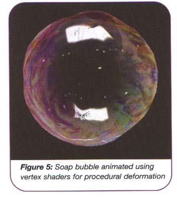 Вершинные шейдеры по существу являются небольшими программами, которые модифицируют вертексные данные. Ключевые преимущества вершинных шейдеров заключаются в том, что благодаря им можно создавать множество эффектов, таких, как процедурные деформации (procedural deformations), теневые объемы (shadow volumes), системы частиц (particle systems), эффекты линз (lens effects), скиннинг с использованием палитры (palette skinning), интерполяцию кейфреймов (keyframe interpolation).