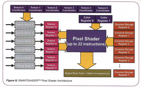 Пиксельные и вершинные шейдеры позволяют превратить графический процессор с фиксированным набором функций в программируемый. Шейдеры способны скомпилировать и запустить низкоуровневой код подобно CPU. Предыдущие поколения графических процессоров использовали фиксированные функции для расчета трансформаций и освещения, текстурирования, фильтрации, операций блендинга. При введении новых возможностей требовалась не только их реализация в API, графические процессоры также должны были быть запрограммированы для выполнения этих операций. Пиксельные и вершинные шейдеры дают новый путь к модифицированию вертексной и пиксельной информации, позволяя графическому процессору манипулировать этими данными без потери скорости.