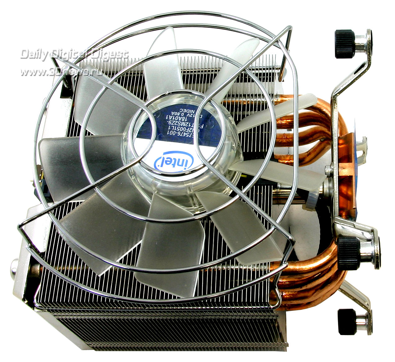 Обработка основания кулера находится на среднем уровне: оно не зеркальное, но и без отчетливых неровностей. При этом основание немного выпуклое, что обеспечивает хороший контакт с крышкой процессора в середине, где и находится сам кристалл. Такое решение малоэффективно при условии идеально ровной крышки процессора, но в нашем случае она оказалась немного вогнутой, и тут выпуклость основания кулера пришлась очень кстати. Intel DBX-B thermal Solution крепится к материнской плате при помощи четырех винтов с удобными головками, которые легко заворачивать пальцами. На заднюю сторону материнской платы устанавливается пластина из мягкого пластика, в которую и вкручиваются винты. Несмотря на не слишком удобное расположение винтов (до головок двух из них приходится тянуться) и на хлипкую конструкцию пластины, такое крепление - это огромный шаг вперед по сравнению со всеми предыдущими версиями креплений. В верхней части радиатора расположен двухпозиционный переключатель. Буква "S" означает Silence, в то время как буква "P" - Performance. В первом из режимов вентилятор вращается со скоростью примерно 800-900 об/мин, а во втором - около 1800 об/мин. И если в режиме Silence вентилятор можно назвать среднешумным, то в режиме Performance он очень громкий: его шум перекрывает и вентилятор блока питания, и видеокарты, и звук от головок жесткого диска. Синюю подсветку крыльчатки отключить нельзя, но она не слишком яркая и глаза не режет. В целом, несмотря на огромное количество недоработок, кулер Intel DBX-B намного превосходит все предыдущие системы охлаждения, которыми комплектовались процессоры Intel. К сожалению, он предназначен только для процессоров Gulftown - остальные процессоры будут комплектоваться старыми кулерами. Посмотрим, на что новая система охлаждения способна в действии - попробуем разогнать процессор. ![]() Максимальная частота, на которой нам удалось загрузить систему при использовании воздушного охлаждения, составила почти 4,5 ГГц. На этой частоте даже получалось пройти некоторые тесты, однако стабильности не наблюдалось. Поэтому частоту пришлось снизить до 4,2 ГГц - при такой частоте все тесты исправно проходились, а процессор с установленным на нем кулером Intel DBX-B Thermal Solution не прогревался выше 65 градусов Цельсия. Однако при попытке проверить стабильность процессора в утилите OCCT, процессор Core i7 980X со штатным кулером все же прогревался до 85 градусов, а система в итоге выдавала синий экран. Несмотря на это, будем считать работу процессора на такой частоте условно стабильной, ведь нагрузки, создаваемые утилитой OCCT LinPack, в реальных приложениях не встречаются. ⇡#Температура и энергопотреблениеПерейдем к тестам производительности процессора и сравним его результаты с результатами других процессоров Intel последнего поколения, но для начала оценим энергопотребление системы.