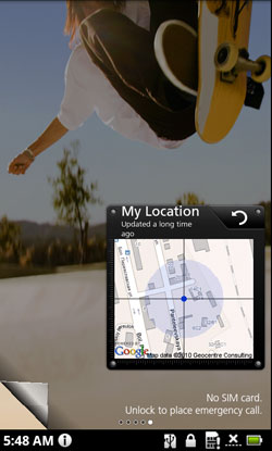 После стандартных "андроидовских" виджетов как-то привыкаешь к тому, что они несут исключительно функциональную нагрузку. Поэтому немного удивительно было увидеть, что один из рабочих столов Acer Stream занят шариком. Да-да, небольшим и очень медленным шариком, который, не без помощи акселерометра, неспешно перемещается по экрану. Как мы ни искали - смысл его существования остался для нас нераскрытым. Другой интересный виджет - "My Location", который в русской локализации, вероятно, получит название "Мое местоположение". Это небольшой квадратик на экране, содержащий кусок карты Google Maps. У него есть одна особенность - обновлять его надо вручную, что делает его не просто малофункциональным, но и почти бесполезным. Однако есть и полезные виджеты - список задач, различные часы, календарь и несколько других. К тому же, в Android Market есть все остальные виджеты, которых в исходной комплектации может не хватать.