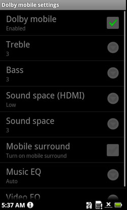 Автор раньше утверждал, что смартфоны HTC неплохо подходят для использования в качестве плеера. Сейчас, автор, конечно, слов назад не возьмет, но Acer Stream подходит для прослушивания музыки куда лучше. Причем повлияла на это не только поддержка Dolby Mobile, которой может похвастаться Stream и не могут похвастаться ни Hero, ни Legend, ни Desire. Удобства добавляют и аппаратные кнопки, предназначенные для перехода к предыдущей или следующей композиции, а также кнопка паузы. И, еще раз повторюсь, плеер с настройками - это куда лучше, чем плеер без настроек.