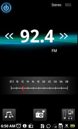 В Acer Stream, как и почти во всех современных смартфонах, есть радио. Интерфейс для FM-радио разработчикам тоже пришлось делать самостоятельно. Выглядит он, конечно, немного менее проработанным, чем Nemo Player, но тоже вполне ничего. К тому же, пользователь может сам выбрать тему для интерфейса, если, конечно, дождется, пока телефон всласть "подумает".