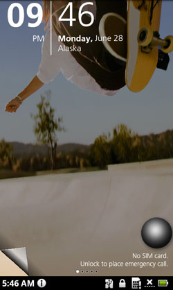 Разблокировка аппарата производится при помощи весьма красивого жеста. В нижнем левом углу каждого рабочего стола находится загнутый уголок страницы: если за него потянуть - рабочий стол начнет сматываться в трубочку, и за ним покажется то, что является основным рабочим экраном телефона.
