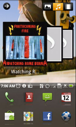 Аналогичные полоски есть и в правой части. Если потянуть за них, то на экране коммуникатора появится медиапанель, позволяющая быстро получить доступ к музыке, фотографиям или видеороликам. Тоже разумное и эргономичное решение - удобнее привычных виджетов.