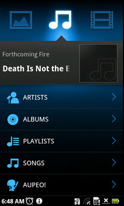 Собственный плеер от Acer под названием Nemo Player - серьезный шаг вперед по сравнению со стандартным плеером Android. Проигрыватель позволяет воспроизводить как аудио, так и видео, и даже фотографии, а так как в Acer Stream предустановлены кодеки DivX и XviD, то видео, теоретически, можно смотреть практически в любом формате и качестве. Учитывая размеры и разрешение дисплея, это полезное и важно дополнение. А если вспомнить о том, что у телефона есть mini-HDMI-выход для подключения к телевизору - то уж тем более. Правда, несмотря на все кодеки, проиграть простейший ролик в формате AVI с разрешением 320х240 Acer Stream почему-то не смог. Спишем это на сырость прошивки. Интересной особенностью Nemo Player является исключительно симпатичный и завершенный дизайн, что для самодельных утилит от производителей железа очень нехарактерно (HTC Sense не в счет).