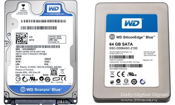 Сейчас мы, конечно, знаем, что флеш-память дешевела медленнее, чем росли потребности в объеме накопителей, а мировой финансовый кризис существенно сократил число любителей дорогих решений. Да и HDD за последние годы просто чудо как похорошели: стали быстрее, тише, надежнее, вместительнее, и это при существенно снизившейся цене гигабайта. Однако стало очевидно и другое: три года назад руководители Seagate и WD приняли решение не только совершенствовать основную продукцию, но и создать реальную альтернативу SSD других брендов. По какому пути пошли в Seagate мы недавно рассказывали – там выпустили гибридный накопитель Momentus XT. Теперь же пришла очередь рассказать об ответе WD – накопителе SiliconEdge Blue, представляющем из себя… классический SSD.