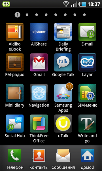 Несмотря на большущий экран (4 дюйма!) и, соответственно, «лопатистый» корпус, носить аппарат комфортно. Спасибо малой толщине и очень небольшому весу. У меня самого довольно крупные руки, и, держа смартфон в ладони, дотягиваться большим пальцем до любой точки на экране могу без проблем. В то же время, менее габаритным пользователям, возможно, удобнее будет иногда прибегать к помощи двух рук. Единственная заметная проблема с корпусом – основной динамик расположен на задней крышке. Он и сам по себе негромкий, так еще легко заглушается тканью, когда носишь аппарат в кармане или в сумке. ⇡#О вау-факторе и мультимедиаПервый день, самый трудный при знакомстве с любым смартфоном, прошел в приятных открытиях. Семь виртуальных экранов, анимированные обои, забавные и разнообразные виджеты Samsung, полностью скопированная с iPhone система меню и деинсталляции приложений (включаем режим редактирования и таскаем иконки, либо удаляем установленные приложения) - все это обрадовало меня до крайности. Не разочаровал и экран: у него великолепные цвета, хорошая чувствительность емкостного мультитач-сенсора и просто чудовищный запас яркости. Это и хорошо, и плохо – картинка отлично видна на солнце, но вот в полной темноте экран слепит. Хорошо воспринимается только изображение с темным фоном и неяркими цветами, поэтому важно, чтобы в читалке был предусмотрен ночной режим, как в FBReader. Кстати, мало кто знает, что регулировать яркость экрана Galaxy S можно, проводя пальцем по верхней полоске служебных иконок влево-вправо – очень удобно (к сожалению, это особенность только смартфона Samsung – прим. ред.), поскольку авторегулировка яркости почти всегда выставляет избыточные значения. ![]() Весомый вклад в первые «вау» вносит традиционно богатый набор предустановленных приложений. Главное «спасибо», конечно за Swype – только благодаря Samsung эту систему ввода текста адаптировали к русскому языку. За подробностями о ее работе отсылаю на www.swypeinc.com, а от себя скажу, что можно спорить об ее удобстве для набора текста двумя руками в спокойной обстановке, но когда нужно отправить SMS на ходу, и свободна только одна рука, лучше Swype ничего еще не придумано. Кстати, именно авторы Swype в свое время изобрели Т9. Также удобно приложение AllShare, позволяющее общаться с DLNA-устройствами (можно слушать музыку с компьютера или показывать отснятый камерой ролик на телевизоре). К слову, аппарат прямо «из коробки» играет DivX и H.264, в том числе и MKV. Главное – не увлекаться и не пытаться посмотреть фильмы с разрешением выше 720p. ![]() Видео снимает отлично (те же 720p), но слабоват звук. А вот фото почему-то отвратительные, причем проблема, похоже, не аппаратная, а чисто программная. Очень надеюсь на будущие прошивки. Среди прочих приложений очень кстати пришелся офисный пакет ThinkFree, также меня вполне устраивают фирменные аудиоплеер и календарь. ⇡#О прошивкахЛюбителям Android, как и ранее Windows Mobile, приходится знать о прошивках очень много. Samsung печет прошивки для Galaxy S с завидной скоростью – порядка двух в неделю, но это в массе своей багфиксы, а вожделенного русского финального обновления до Android 2.2 пока нет. Я не любитель ковыряться в ПО смартфонов без крайней необходимости, поэтому заводскую прошивку обновил лишь один раз, спустя пару месяцев (об этом чуть ниже). Разного рода «клубные» прошивки имеются, но знакомить