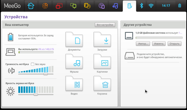 В середине ноября должна выйти новая версия операционной системы MeeGo с индексом 1.1. Тогда же ряд производителей мобильных и планшетных компьютеров объявит о новых продуктах, работающих на совместном детище Intel, Nokia и The Linux Foundation. Со смартфоном Nokia на MeeGo все чуть сложнее. На Nokia World его не показали, и в индивидуальных показах особо доверенным журналистам и блоггерам прототипы на MeeGo замечены не были. Молчит и всезнающий YouTube, где можно полюбоваться лишь на работу MeeGo 1.1 Developer Edition на Nokia N900 и безымянном прототипе с Intel Atom Moorestown внутри. Это с большой долей вероятности означает, что если 15 ноября на MeeGo Conference в Дублине что-то и покажут, на прилавках это что-то появится в лучшем случае в 2011 году. Теперь уж нет никаких сомнений и в том, что первые смартфоны на MeeGo будут работать на архитектуре ARM: со сцены прошедшего недавно IDF в Сан-Франциско не прозвучало ни слова о телефонах – все о нетбуках да планшетах. Не говорилось и о переводе Intel Atom на технологию 32 нм, тогда как 45 нм для телефонных нужд все же многовато. Лично я не удивлюсь, если в случае с «Атомом» корпорация вообще пропустит 32 нм и сделает «телефонный» чип сразу 22-нанометровым. Конечно, на это потребуется некоторое время, но зато такой шаг будет эффективен и с потребительской, и с маркетинговой точек зрения. Впрочем, все это мои предположения, основанные лишь на изучении слайдов презентаций с IDF. ![]() Персонажи MeeGo, «мигоны», чью внешность придумало английское агентство Airside Зато хорошая новость для владельцев смартфона N900, в свое время не на шутку обиженных нежеланием Nokia сделать для него полноценную версию MeeGo, вполне конкретна. В блоге на MeeGo.com прозвучало обещание, что MeeGo 1.1 на N900 все же появится, причем не в виде странного обрезка для опытов, как 1.0, а целиком, с Wi-Fi и телефонной частью. Больше того, обещают добавить возможность двойной загрузки MeeGo или Maemo PR 1.3 (релиз последней тоже должен состояться довольно скоро). ![]() Но пока смартфонная судьба MeeGo пишется лишь слухами да обещаниями, по рынку гуляют предварительные версии нетбуков с этой операционной системой на борту. Один из них – производства MSI - я взял с собой в командировку в Нижний Новгород, чтобы в полевых условиях оценить пригодность MeeGo к использованию по назначению на нынешнем этапе развития системы. Стоит подчеркнуть, что система действительно развивается – усилиями самой Intel, Linux Foundation, а также производителей пользовательских устройств. Так, после первого включения мой нетбук скачал 53 апдейта общим объемом 136 Мбайт, а потом каждый день их выходило еще, как минимум, по одному. ![]() Обновлениями вылечены многие детские болезни MeeGo 1.0, вроде отвратительной поддержки адаптеров Wi-Fi. Например, на моем экземпляре нетбука беспроводная сеть заводиться не хотела категорически, но, будучи единожды подключенным по Ethernet, нетбук капризничать перестал и впредь подключался ко всем попавшимся сетям в Москве и Нижнем. Добавив к апдейтам еще пару фильмов в DivX, я положил нетбук в чемодан и отправился на вокзал. ⇡#В путиО самом нетбуке рассказать почти и нечего – он уже несколько месяцев продается по всему миру под кодовым именем Wind U135DX. Все отличие от серийной модели заключается в установленной операционной системе MeeGo вместо Windows XP Home или Windows 7 Starter. Сейчас за U135DX просят от 10 до 13 тысяч рублей, в зависимости от аппетитов продавцов, а также емкости жестког