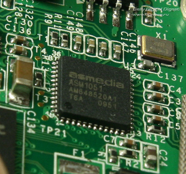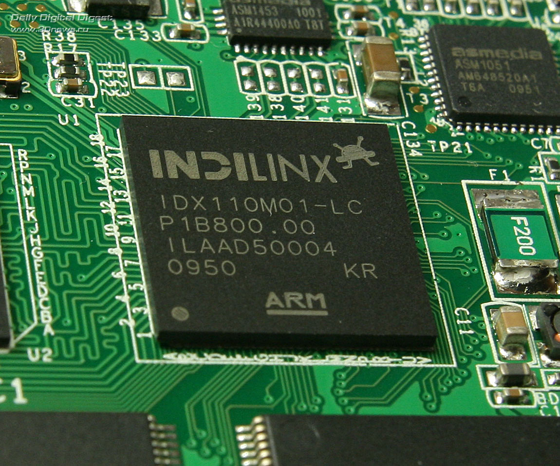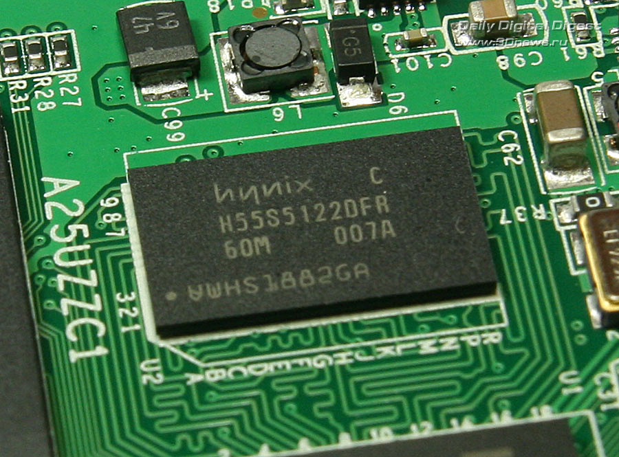 ⇡#Дизайн и эргономикаВнешний вид SSD-накопителя ADATA N002 Внешний вид накопителя оставляет только самые приятные впечатления. Аккуратный полностью алюминиевый корпус чёрного цвета, на крышке которого демонстративно оставлены следы фрезы, наделен набором всех крепёжных и присоединительных узлов в полном соответствии с таковым у 2,5-дюймовых жёстких дисков. Благодаря этому обстоятельству новинку с легкостью можно установить в любой современный ноутбук. В этом случае пригодятся стандартные интерфейсы (порты питания и SATA), расположенные на одном из торцов. В неиспользуемом состоянии интерфейсы заботливо прикрыты резиновой заглушкой, которая должна защитить их от внешних воздействий. Заглушка наверняка снизит вероятность повреждения, но будь в комплекте поставки ещё и чехол, защита была бы куда надёжнее. Вид снизу SSD-накопителя ADATA N002 Полноразмерный порт USB 3.0 на тоненьком корпусе ADATA N002 разместить не получится, а потому разработчики воспользовались его более компактной версией Micro-B, совместимой с интерфейсом USB 2.0 Micro-B. Этот довольно широкий сдвоенный разъём расположен на одной из длинных боковых граней корпуса. Заглушкой он не прикрыт, но случайно повредить его гораздо сложнее, чем сильно выступающий интерфейс SATA. В целом внешность, удобство эксплуатации и гибкие возможности подключения накопителя заслуживают самой высокой оценки. Теперь давайте посмотрим, что у новинки внутри. ⇡#Внутреннее строениеСистемная плата SSD-накопителя ADATA N002 Накопитель собран на одной печатной плате с двусторонним монтажом элементов. Пайка всех компонентов очень аккуратная и не вызывает ни малейших нареканий. ![]() Модули NAND-памяти Intel 29F64G08CAMDB Носитель собран на шестнадцати микросхемах NAND-памяти Intel 29F64G08CAMDB, каждая из которых имеет объём 8 Гбайт. Контроллер SATA II Indilinx Barefoot IDX110M01-LC Самая крупная микросхема на плате — это микроконтроллер SATA II Indilinx Barefoot IDX110M01-LC производства южнокорейской компании Indilinx Inc., который в составе твердотельных накопителей встречается очень часто. Он обеспечивает одновременную работу с памятью типа MLC общим объёмом до 256 Гбайт, что полностью соответствует спецификации нашей новинки. Для этого типа памяти производитель задаёт следующие ограничения по производительности: до 200 Мбайт/с на чтение и до 170 Мбайт/с на запись, что также полностью соответствует заявленным характеристикам для ADATA N002. Модуль буферной памяти Hynix H55S5122DFR Рядом с контроллером расположена микросхема буферной памяти Hynix H55S5122DFR производства другого южнокорейского лидера на рынке микроэлектроники — компании Hynix Semiconductor Inc.. Она представляет собой модуль SDRAM объёмом 64 Мбайт. ![]() USB-мост ASMEDIA ASM1051 Ну а работу порта USB 3.0 обеспечивает мост ASMEDIA ASM1051 от компании ASMedia Technology Inc. То есть при подключении новинки по USB 3.0 обработка информации происходит не напрямую, а через посредника — SATA-контроллер Barefoot IDX110. Естественно, что скорость передачи данных через USB 3.0 при этом ограничивается возможностями SATA-контроллера.
