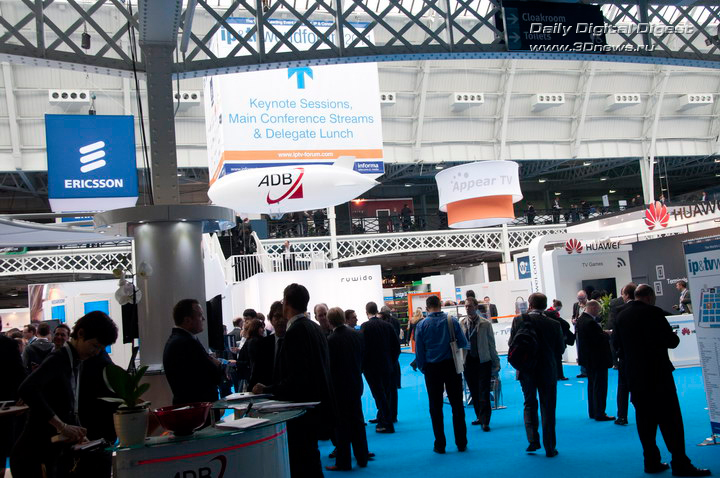 Но чтобы каналы к тебе пошли, надо иметь устройство с большой долей рынка, внятным интерфейсом и мощной железной начинкой, способной потянуть не только FullHD, но и модное 3D. Нечто подобное давно пытается сделать Apple, но популярность Apple TV оставляет желать много лучшего. Между тем возможность стать телемагнатами нового поколения уже «раскушали» как гранды вроде Ericsson и Cisco, так и относительно небольшие компании, среди которых встречаются российские. Доказательством этому служит ежегодная выставка IP&TV World Forum, проходившая в конце марта в Лондоне. Причем не абы где, а в главном павильоне «Олимпии», самого крупного выставочного центра британской столицы, куда подведена даже собственная ветка метро. Если сравнивать с CES или CeBIT, лондонское мероприятие выглядит довольно камерным: всего-то около 140 компаний-участниц и чуть меньше 6 500 посетителей. Но надо понимать, что зевак на IP&TV World Forum не пускали, безымянных китайцев не приглашали и даже прессу специально не заманивали. В пресс-комнате или, если называть вещи своими именами, пресс-закутке не было и намека на давку: нас было буквально человек шесть, включая единственного русскоязычного журналиста — вашего покорного слугу. А компании между тем собрались именитые: свои стенды развернули Intel, Microsoft, Alcatel-Lucent, Huawei, Nokia Siemens, Sigma Technologies, Motorola, а вот ни единого знаменитого «телевизионного» бренда обнаружить не удалось. Интересно? Что же, давайте вместе пройдемся по стендам и разберемся, почему все именно так.
