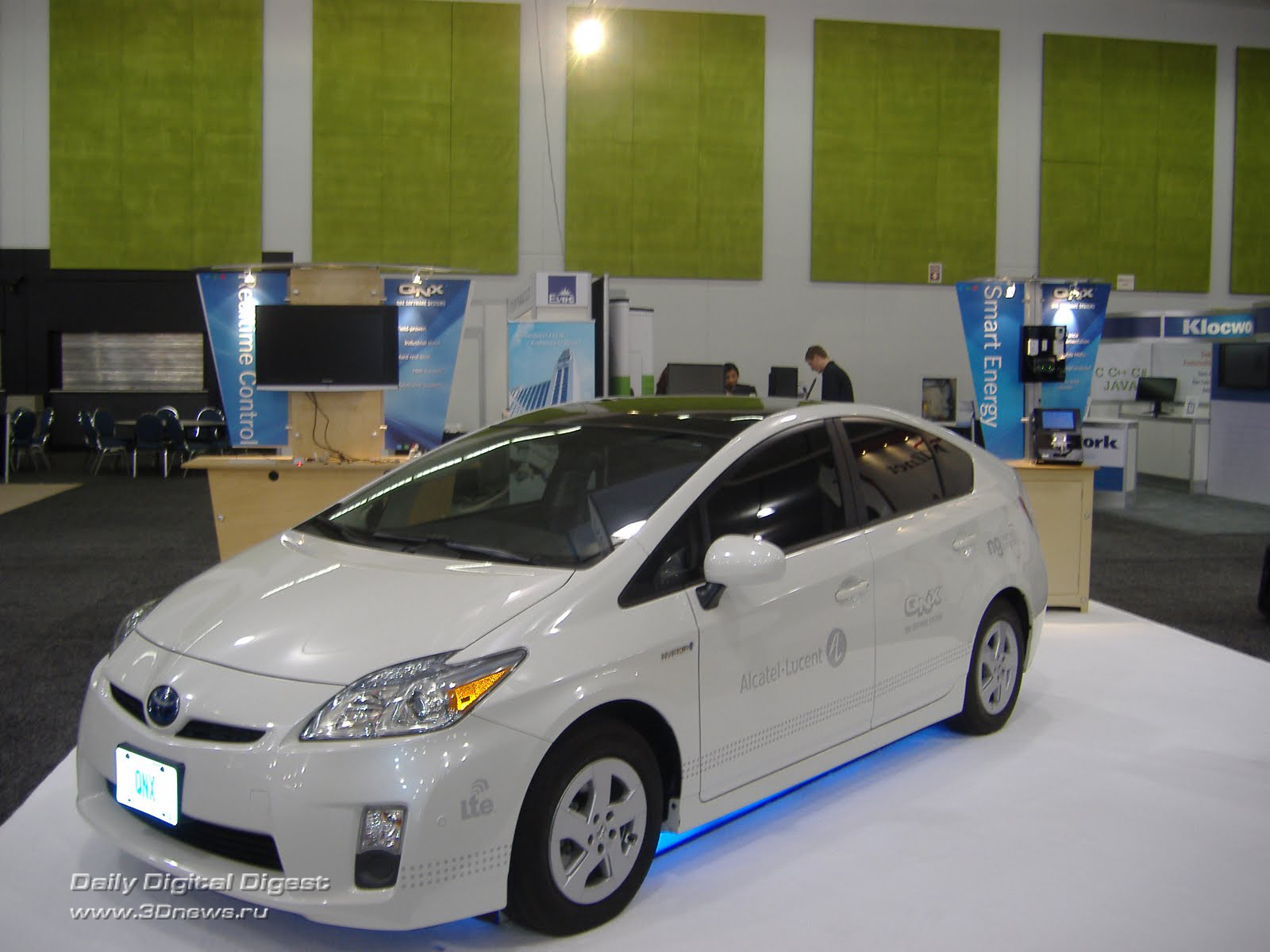 Первый демоавтомобиль LTE Connected Car был построен компанией Alcatel-Lucent за четыре месяца. Вполне естественно, что базой для него стала Toyota Prius последнего, третьего поколения. В нём уже были реализованы такие сервисы, как видео по требованию, индивидуальное телевидение с хранением контента в «облаках», онлайн-игры, интернет-радио, интеграция с основными социальными сетями, навигация и локальный поиск. Видеоролик про эту машину с участием разработчиков можно посмотреть здесь. А здесь можно поиграться одним из первых образцов интерфейса LTE Connected Car. Сейчас интерфейс уже доработан с учётом сервисов новых партнёров проекта, но общее впечатление от возможностей LTE Connected Car можно получить и из этой демоверсии.