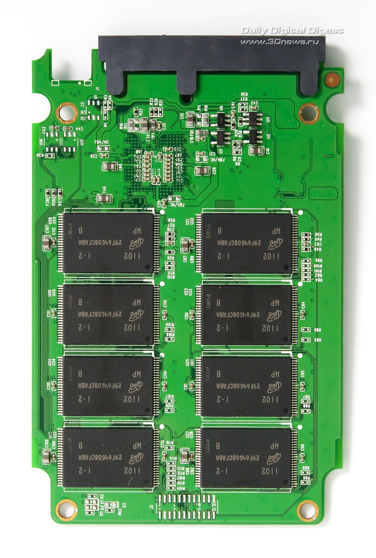 Спецификация V20 с официального сайта Silicon Power на удивление скудная. Благо у приводов на SandForce ТТХ почти не различаются. Жалко, что производитель не раскрыл время наработки на отказ, хотя трехлетняя гарантия в любом случае вселяет уверенность. ⇡#Комплект поставки, конструкцияКоробка с окошком, помимо самого накопителя, содержит адаптер для установки в 3,5-дюймовый отсек с набором винтиков и руководство по эксплуатации. Программы для клонирования разделов в комплекте нет. С виду накопитель ничем не примечателен: корпус из тонкого металла, наклейка с блестящими золотистыми полосками. Контакты SATA-разъема тоже «позолочены», для солидности. Микросхемы памяти выпустила компания Micron, это чипы MLC NAND Flash, произведенные по техпроцессу 34 нм.