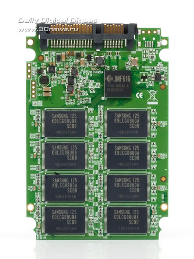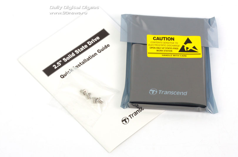⇡#ВведениеКомпания Transcend, известная многим благодаря качественным флешкам, производит также и SSD-приводы. Правда, лишь одна линейка SSD обладает привычным форм-фактором и интерфейсом SATA 2, ее мы сегодня и будем исследовать. Остальные предложения — это SSD с шиной USB 3 и всякая экзотика: накопители в форм-факторе 1,8 дюйма и PATA-устройства. Официальный сайт весьма скуп на информацию. Все, что удалось оттуда почерпнуть, это скорость последовательного доступа. Видно, что она сильно варьируется в зависимости от объема накопителя и в пределе достигает вполне себе неплохого уровня для интерфейса SATA 2. Но нам прислали модель объемом 128 Гбайт (TS128GSSD25S-M), которая существенно медленнее по части записи. Марку контроллера и объем буферной памяти производитель не раскрывает, поэтому в спецификациях мы указали только то, что увидели своими глазами, когда вскрыли SSD. А именно восьмиканальный чип JMicron JMF616, который выполняет распределение износа ячеек (wear leveling), но, увы, не имеет поддержки TRIM. В качестве буфера используется микросхема DDR2 SDRAM производства Samsung объемом 64 Мбайт. По поводу того, из чего состоят модели другого объема, уверенности нет, хотя, вероятнее всего, начинка там такая же. TS128GSSD25S-M стоит примерно столько же, что и аналогичные по объему приводы на платформе SandForce SF-1200, например Vertex 2: около 6 тыс. руб. в московских интернет-магазинах.