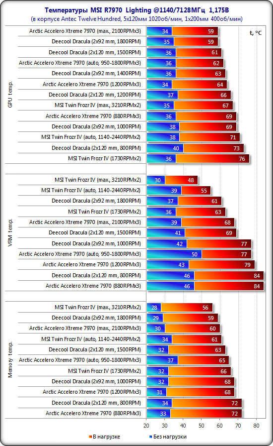 Результаты тестирования эффективности систем охлаждения представлены вашему вниманию на диаграмме: