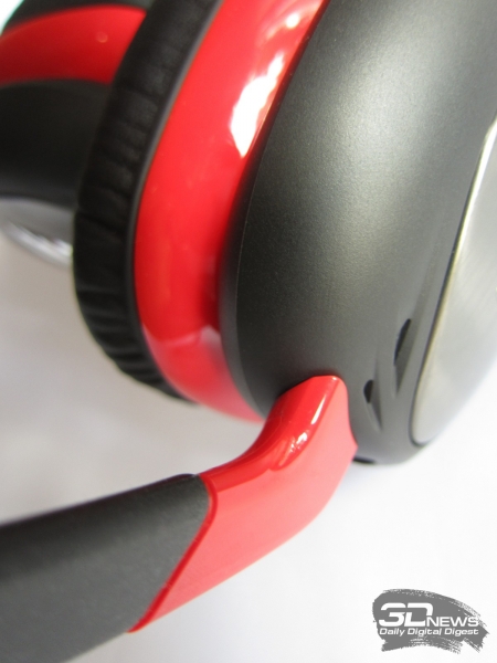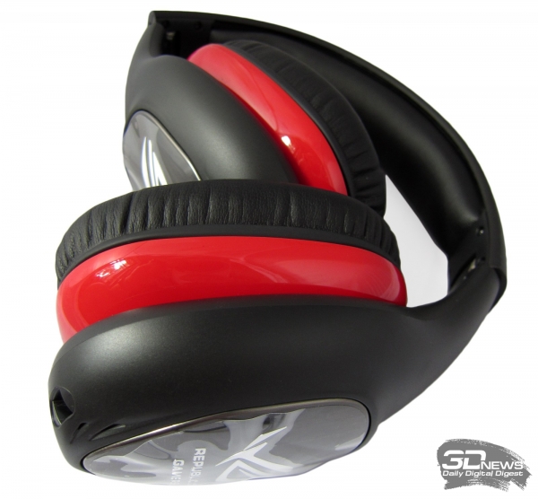 ⇡#ДизайнМожет показаться странным, но фотография на коробке, в которой продается гарнитура, не дает представления о реальном внешнем виде товара. Плоская картинка «съедает» контуры, и объем модели теряется. В действительности гарнитура выглядит куда эффектнее и массивнее, чем на картинке с упаковки. Чашки наушников довольно большие, оформлены в агрессивном красном цвете. Благодаря этому, а также за счет особой овальной вытянутой формы чашек, гарнитура вызывает стойкую ассоциацию с гоночными аксессуарами — с мотоциклетным шлемом или с большими наушниками, предназначенными для предохранения слуха на спортивной трассе. Кричащий дизайн может натолкнуть на мысль о том, что гарнитура сделана слишком несерьезно. Красные чашки и пластик на оголовье заставляют думать, что перед нами еще одна игрушка для состоятельных геймеров, которая через пару недель потеряет товарный вид, сломается или просто надоест. Но стоит развернуть Vulcan Pro, пощелкать стальными шарнирами, примерить и послушать в режиме ANC — и отношение к ней меняется. Рассматривая гарнитуру и все, что к ней прилагается, можно обратить внимание на особый логотип. Он нанесен на разные элементы — от крышки батарейного отсека до кейса для хранения и транспортировки. Если вы подумали, что это герб рыцарского ордена, вы не угадали, а вот если съязвили, что это эмблема тайной секты почитателей товаров ASUS, то почти попали в точку. Этот знак принадлежит сообществу любителей игр, которое называется ASUS Republic Of Gamers («Республика геймеров»), или попросту ASUS ROG. Данная организация была создана в 2006 году геймерами и энтузиастами, которые стараются выжать максимум из своего «железа». Команда ROG тестирует, разгоняет и тюнингует материнские платы, видеокарты, ноутбуки, настольные компьютеры, мыши и вообще «издевается» над тем, что имеет хоть малейшее отношение к компьютерным играм. Гуру оверклокинга ставят рекорды по быстродействию «железа» и доказывают, что потенциал продукции ASUS не ограничивается заявленными характеристиками. Гарнитура Vulcan Pro сделана «под чутким руководством» знатоков своего геймерского дела. ⇡#КонструкцияСкладная конструкция гарнитуры сделана очень тщательно и с умом. Обилие в ней металлических деталей, включая шарниры, дужки и прочее, — вызывает невольную ностальгию по тем временам, когда наличие винтовых соединений между элементами любого устройства было нормой. В наш век пластиковых дужек и пластмассовых защелок обычные металлические скобы стали признаком элитного товара и вызывают неподдельное восхищение у потенциальных покупателей, уставших от недолговечности приобретаемых вещей. Большие размеры плюс наличие стальных частей сказываются на весе модели — она заметно тяжелее любых «походных» наушников. Несмотря на то, что размер у чашек внушительный, дизайн гарнитуры продуман таким образом, что в сложенном состоянии наушники занимают места гораздо меньше, чем можно было бы ожидать. При складывании гарнитуры в компактное положение каждая чашка загибается внутрь дуги, при раскладывании положение элементов фиксируется с легким щелчком. Правая и левая сторона помечена соответствующими буквами, хотя они не сразу бросятся в глаза. На внутренней стороне (той, что обращена к голове пользователя), в месте, где шарнир складной конструкции позволяет чашке выполн