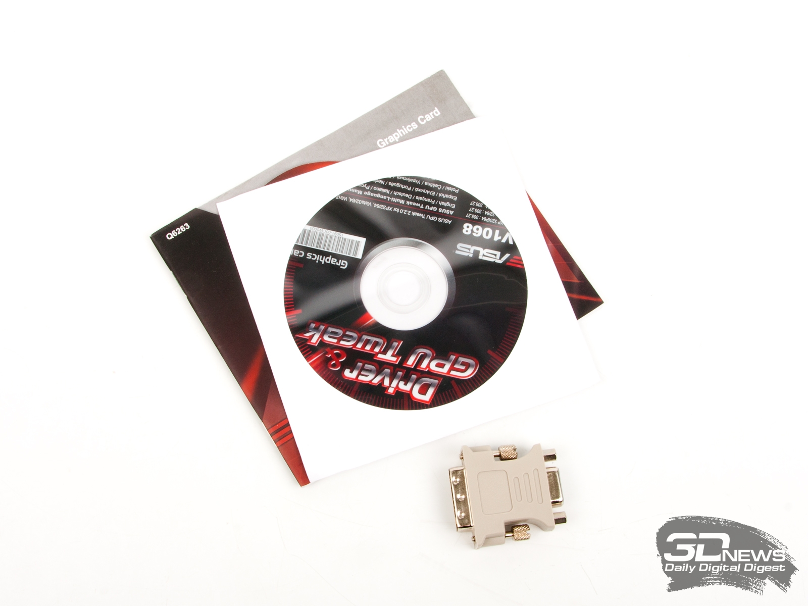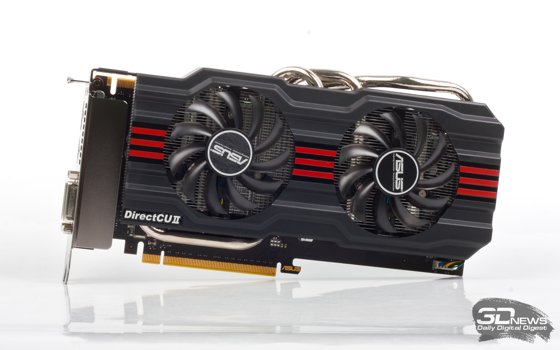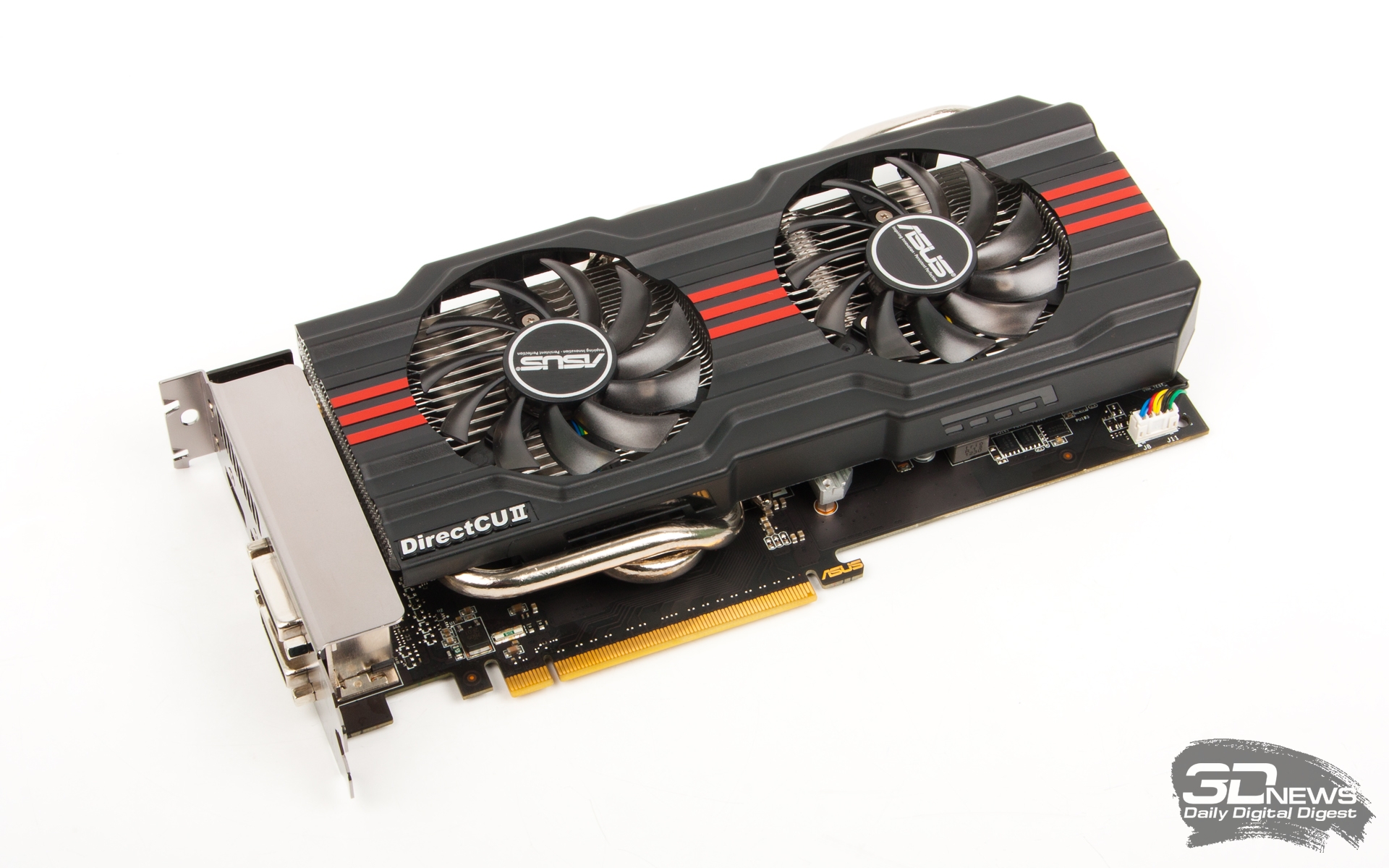 ⇡#Технические характеристики, комплект поставкиПриведем резюме из общего обзора GeForce GTX 660 и его реализации на референсной печатной плате: В большинстве игр GTX 660 может легко заменить гораздо более горячий и прожорливый GeForce GTX 570 или Radeon HD 6970 и подчас наступает на пятки GTX 580. Самая близкая по энергопотреблению карта из серии AMD Southern Islands, Radeon HD 7850, по результатам всех бенчмарков, также не может конкурировать с GTX 660. Для HD 7870 GTX 660 представляет серьезную угрозу, так как при заметно меньшем энергопотреблении и габаритах он во многих тестах показывает равный, а подчас и более высокий уровень производительности. Как и старшие карты на платформе Kepler, GTX 660 хорошо разгоняется, хотя практическая ценность разгона адаптеров этой ценовой категории и невелика. С сугубо практической точки зрения GeForce GTX 660 представляет собой такой видеоадаптер, который за относительно небольшие деньги позволит играть в современные игры с максимальными настройками в разрешении 1920х1080, не чувствуя дефицита производительности. В линейке видеоадаптеров ASUS есть три варианта GeForce GTX 660. В отличие от ZOTAC, на примере продукта которой мы тестировали GTX 660, ASUS не стала копировать референсную PСB: все три модели производятся на базе платы оригинального дизайна. Сама плата интересна своей шестифазной системой питания с цифровыми контроллерами. Другая отличительная черта карт ASUS — система охлаждения открытого типа с прямым контактом тепловых трубок и GPU. Различия между тремя разновидностями GTX 660 от ASUS сводятся к сорту кристаллов GK106 и штатным тактовым частотам GPU и видеопамяти.