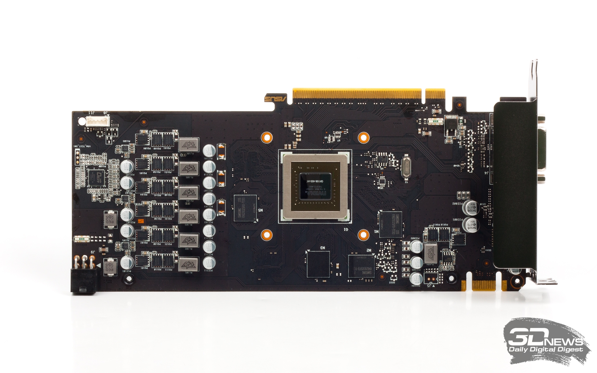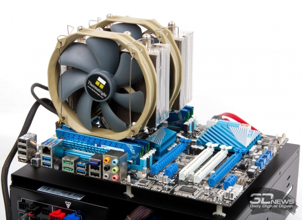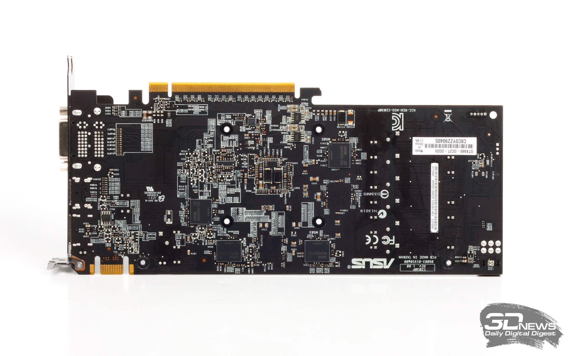Нам на тестирование досталась версия GTX 660 DirectCU II TOP без игры. В коробке лежал только диск с драйверами, бумажное руководство пользователя и переходник с DVI на VGA. Сайт ASUS сообщает, что в комплекте должен быть и адаптер питания, но мы его не нашли (наверное, потерялся по дороге). Увы, если эта карта по результатам тестов вам очень понравится, то найти ее в продаже будет нелегко. По крайней мере, в московских интернет-магазинах мы ее не обнаружили. Цены на дешевые варианты GeForce GTX 660 начинаются с 7 000 руб. Базовая версия ASUS GeForce GTX 660 DirectCU II стоит как минимум восемь тысяч. Известен только гарантийный срок GTX 660 DirectCU II TOP — три года. ⇡#КонструкцияПри взгляде на GTX 660 DirectCU II TOP бросается в глаза массивная система охлаждения в металлическом кожухе. Да, в солидном дизайне картам ASUS не откажешь. По сравнению с уже знакомым адаптером ZOTAC, новинка заметно больше по размерам как кулера, так и PCB. А вот и изнанка хваленой системы DirectCU II. Крупный радиатор пронизан тремя медными тепловыми трубками, которые напрямую контактируют с кристаллом GPU. Места на подошве радиатора хватило и для термопрокладки, прижатой к двум микросхемам памяти. Остальные чипы обходятся без дополнительного охлаждения. Набор и расположение видеовыходов стандартные для GTX 660 и более старших карт в линейке GeForce 600: пара Dual-Link DVI, HDMI и DisplayPort с полноразмерными разъемами. ⇡#ПлатаГабариты PCB увеличены относительно референсной карты, для того чтобы вместить усиленную систему питания. Референсная PCB предусматривает питание по схеме 4+1 фаза (для GPU и видеопамяти соответственно). На ASUS GTX 660 DirectCU II TOP для питания GPU отведены шесть фаз. В схеме использованы цифровые ШИМ-контроллеры и высококачественные компоненты под маркой Super Alloy — катушки и конденсаторы. По заявлению ASUS, оптимизированная система питания на 15% повышает энергетическую эффективность карты и в 2,5 раза — ее надежность и срок службы. На контроллер питания GPU нанесена маркировка Digi+, но есть информация, что на самом деле это CHiL Semiconductor CHL8228, который поддерживает до восьми фаз. Память набрана микросхемами Samsung K4G20325FD-FC03 со штатной эффективной тактовой частотой 6000 МГц. ASUS GeForce GTX 660 DirectCU II TOP ASUS GeForce GTX 660 DirectCU II TOP, вид с тыльной стороны ZOTAC GeForce GTX 660 ⇡#Методика тестирования