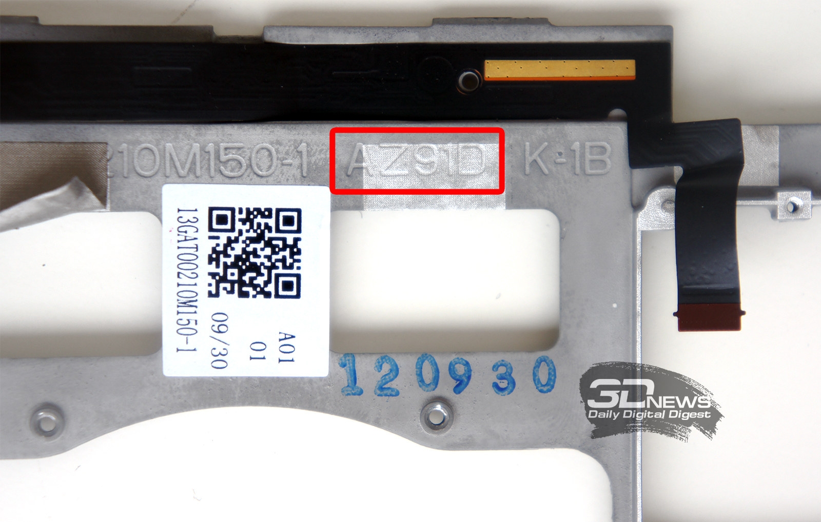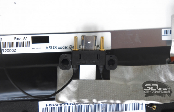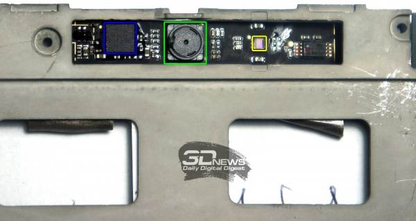 • Гибкая плата с веб-камерой, ее контроллером и датчиком освещенности, а также разъем, которым она подключается к материнской плате