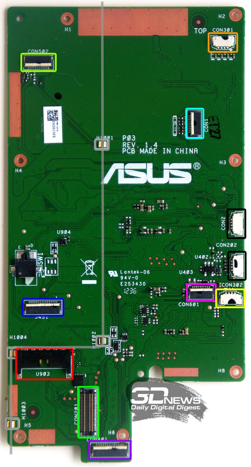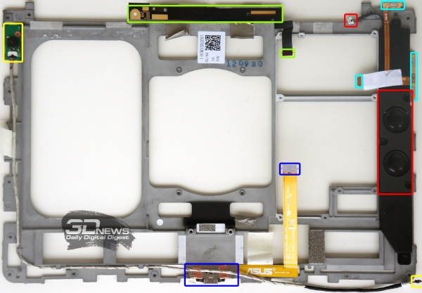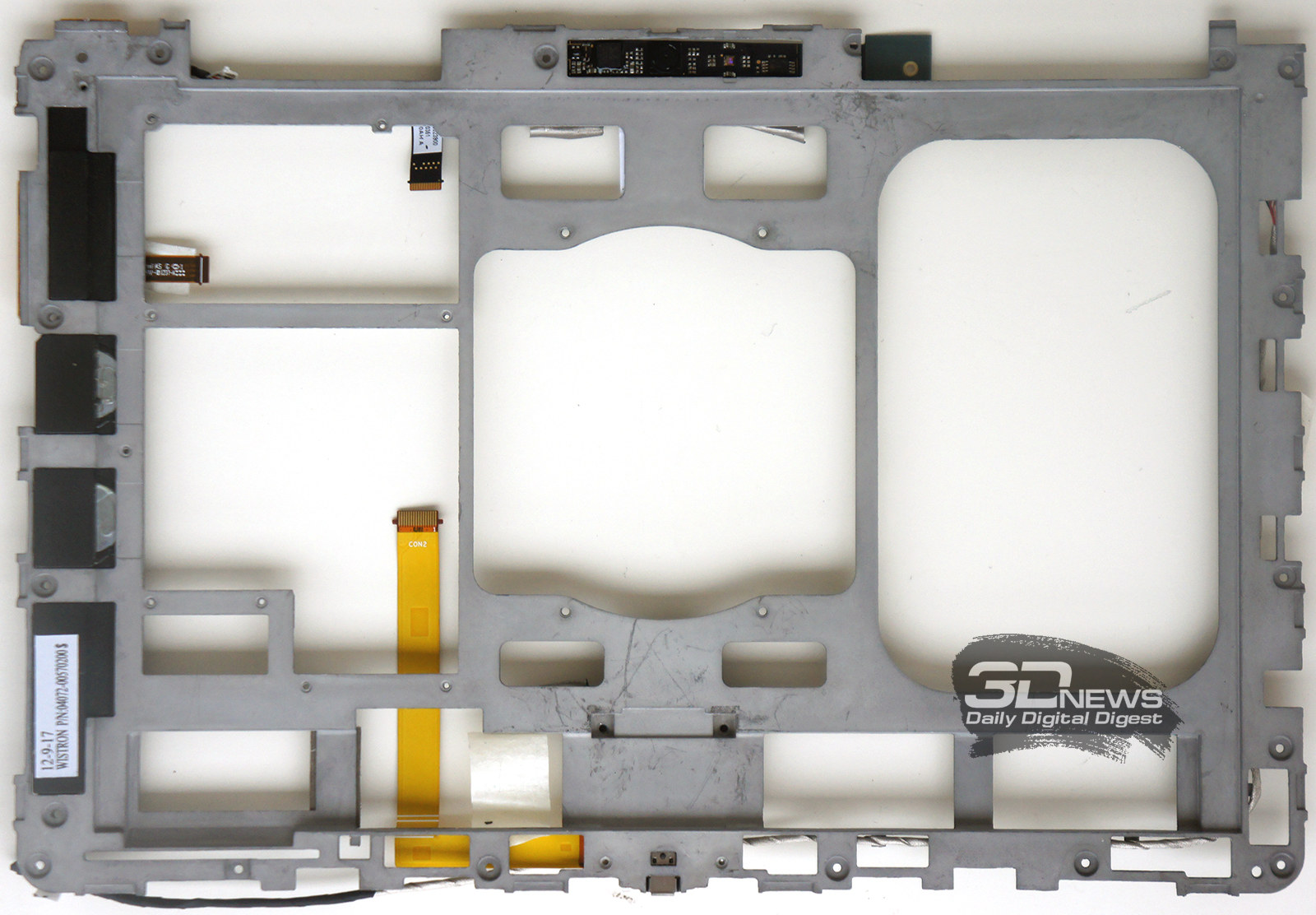 Несмотря на то, что все внешние панели корпуса выполнены из пластика (любителям « Занимательного материаловедения » по секрету сообщим – поликарбонат), в основе конструкции лежит магниевая рама, как в Nexus 7 . Собственно, без рамы ничего и не получилось бы – один лишь пластиковый корпус не способен обеспечить нужную жесткость конструкции.