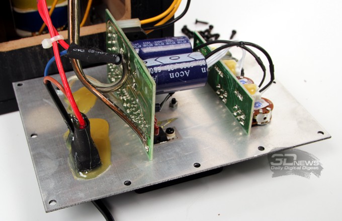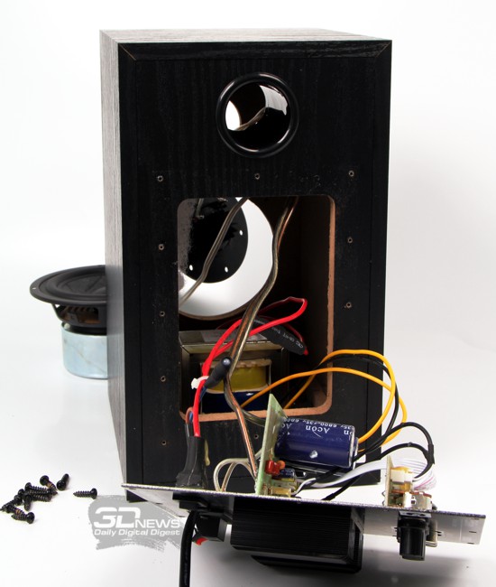 Отвинчиваем дюжину шурупов на тыльной стороне активной колонки и получаем доступ к электронной части системы.