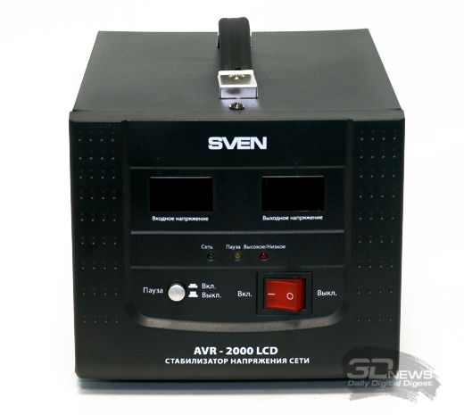 Стабилизаторы силового сетевого напряжения — не частые гости в редакции 3DNews, но это как раз и стало одним из поводов для более тщательного отношения к процессу тестирования новинки AVR-2000 LCD от финской компании SVEN. Надо отметить, что продуктовая линейка этого производителя уже давно включает в себя множество вариантов стабилизаторов с различными нагрузочными характеристиками. LCD в названии модели означает наличие цифрового мультисегментного индикатора уровня входного и выходного напряжений, но в рознице можно найти и другой вариант — с классическими "стрелками". Серия AVR включает в себя модели с индексами от 500 до 5000, на практике это означает максимальную поддерживаемую мощность от 400 Вт до 4 кВт.
