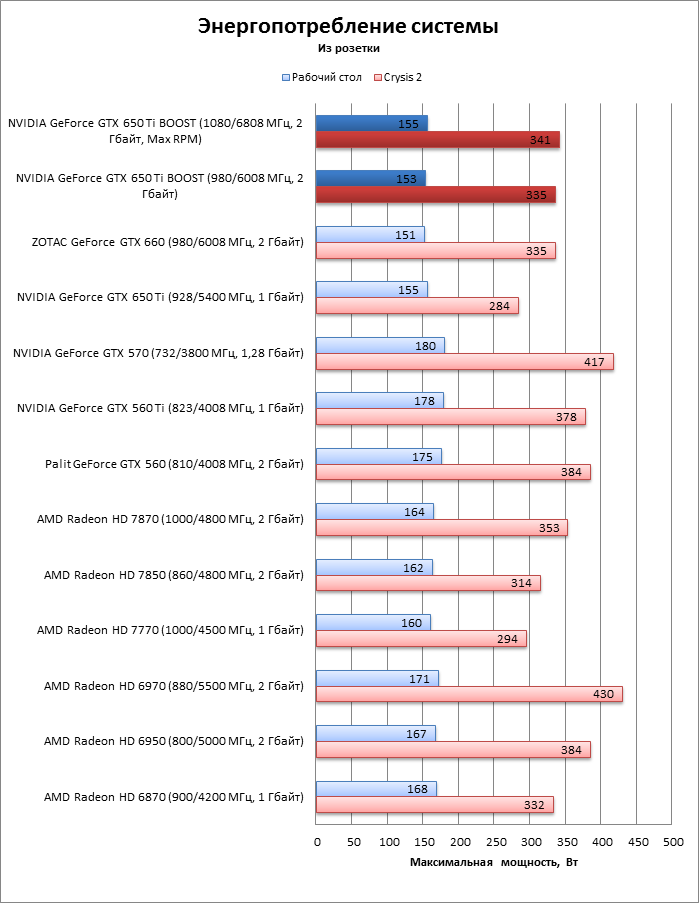 Эмпирически измеренное энергопотребление GTX 650 Ti BOOST нисколько не отличается от такового у GTX 660. Разгон не оказывает на этот показатель большого влияния. В сравнении с видеокартами AMD новинка расположилась между Radeon HD 7850 и HD 7870, что соответствует соотношению формальных показателей TDP этих адаптеров. И поскольку в кои-то веки видеокарта семейства Kepler не имеет большого преимущества по энергопотреблению перед ближайшими конкурентами от AMD и даже потребляет больше, чем HD 7850, ей придется отработать каждый дополнительный ватт в бенчмарках. ![]() От системы охлаждения кустарного вида, установленной на референсной карте, мы не ожидали высокой эффективности. И действительно, она не идет ни в какое сравнение с кулером GeForce GTX 660 в исполнении ZOTAC. Благо ни у одной из версий GTX 650 Ti BOOST, представленных партнерами NVIDIA, референсной системы охлаждения не замечено. В качестве достоинства референсного дизайна отметим, что, как и прочие видеокарты семейства Kepler, GTX 650 Ti BOOST работает весьма тихо, и даже на максимальных оборотах турбины шум относительно невелик. ![]() ⇡#Производительность, синтетические тесты3DMark 2011 (DirectX 11)