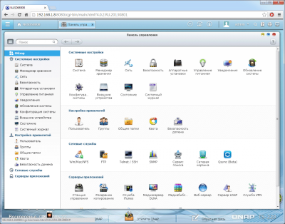 Обновлённая QTS предлагает пользователям одновременную работу с несколькими приложениями, а для всех открытых окон предусмотрена панель задач в верхней части рабочего стола. Открытые окна можно сворачивать и разворачивать точно так же, как, например, в Windows. Кроме того, на главной странице есть ссылки на все необходимые ресурсы Сети и официальные форумы, из которых можно почерпнуть немало информации по вопросам, связанным с нюансами работы и настройкой QTS.