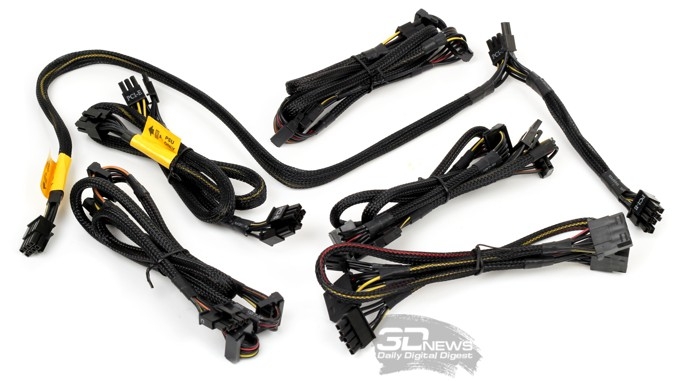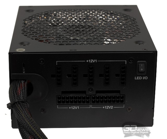 ![]() Комментируя характеристики, мы хотели бы в первую очередь отметить сертификацию КПД по стандарту 80PLUS Bronze, две мощные шины питания +12 В с высоким уровнем максимальной нагрузки, применение надёжных японских конденсаторов, внушительную программу AQ5 — 5 лет гарантии и глобальной поддержки 24 часа в сутки и 7 дней в неделю. Кроме того, для модели Antec HCG-750M также заявлена поддержка специального 16-контактного разъёма для модульного подключения кабелей и технология «полной защиты» CircuitShield промышленного класса с девятью отслеживаемыми параметрами. Ещё один плюс для любителей эстетического оформления систем — предусмотрена отключаемая подсветка вентилятора. В целом же, если цена на Antec HCG-750M будет приятной, такое сочетание востребованной паспортной мощности и интересных заявленных характеристик может стать решающим фактором при выборе БП для игровой системы уровня выше среднего. Таким образом, наша сегодняшняя задача сводится к исследованию конструкции устройства и подтверждению заявленных производителем ключевых характеристик на практике. ⇡#Комплект поставки. КонструкцияДизайн упаковки рассматриваемой модели типичен для всех БП семейства Antec HCG/M — он не изменялся по крайней мере последние три года: контрастный чёрный фон, агрессивное сочетание красного, белого и жёлтого цветов. «Устрашающая» ломаная линия в сочетании с выражением High Current («сильноточный»), конечно, по-прежнему забавляет, хотя, безусловно, это остроумное изобретение маркетологов не могло не отразиться на узнаваемости бренда HCG. ![]() Комплект поставки модели Antec HCG-750M включает блок питания с мягким «замшевым» пакетом для хранения, комплект съёмных кабелей, сетевой кабель, кабельные стяжки, крепёж, инструкцию по эксплуатации и гарантийный талон. ![]() Корпус БП HCG-750M выполнен из достаточно толстой и безусловно прочной стали, покрытой стойкой к царапинам краской. Компоновку можно назвать наиболее типичной для современного «десктопного» блока питания: большой, 135-мм вентилятор на нижней плоскости, вентиляционная решётка с достаточно крупными «сотовыми» отверстиями во весь «внешний» боковой торец, кроме области выключателя и разъёма для подключения силового кабеля, кабельная разводка на противоположной стороне. ![]() В отличие от рассмотренных нами ранее 1200-Вт и 520-Вт моделей Antec HCG/HCP с интегрированным кабельным хозяйством, в БП HCG-750M разработчики корпуса решили придерживаться наиболее лаконичного дизайна и обошлись без применения накладных декоративных элементов на нижней вентиляционной решётке, которая, в свою очередь, в результате фигурной штамповки приобрела некоторую минимальную выпуклость. ![]() ![]() ⇡#Кабельное хозяйствоВстроенными у модели Antec HCG-750M являются лишь кабель основного питания системной платы с 24-контактным разъёмом да 8(4+4)-контактный кабель питания CPU. Для подключения съёмных (модульных) кабелей у блока питания предусмотрено два двухрядных 16-контактных разъёма, а также пять 5-контактных разъёмов. Кстати, миниатюрный выключатель, расположенный в правом верхнем углу, рядом с модульными разъёмами, предназначен для отключения светодиодной иллюминации вентилятора. ![]() Производитель особенно подчёркивает, что 16-контатные разъёмы на практике представляют собой сдвоенные для надёжности шины питания 8-контактных разъёмов PCI-E. ![]() Все модульные, рав