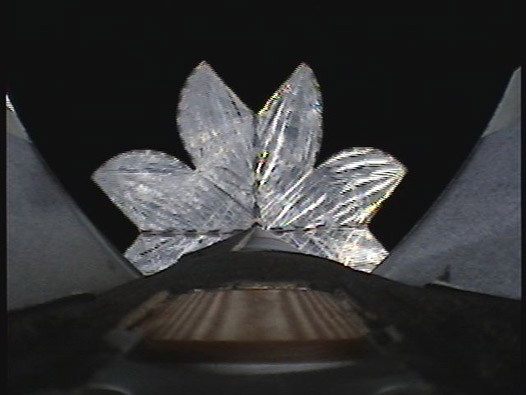 Процесс развертывания паруса в форме клевера, снятый бортовой камерой S-310
