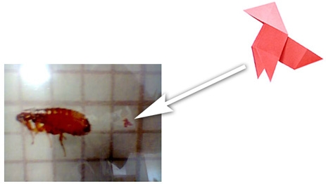 Одна из самых маленьких моделей оригами в мире в сравнении с блохой