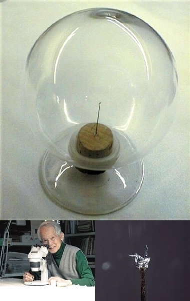 Первая модель крохотного журавлика от Наито Акира, умещающегося на острие иглы
