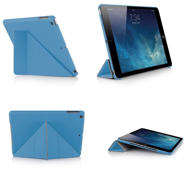 Многие защитные чехлы для планшетных ПК выглядят стандартно — как книжка, одна сторона которой накрывает дисплей. Эта часть за ненадобностью обычно заворачивается и служит подставкой. Одному из дизайнеров пришло в голову, что эту деталь можно сделать складной, что позволит получить массу дополнительных функций. Теперь подставку под планшет можно складывать несколькими способами, подворачивать целиком или частично. Благодаря этому стало возможным регулировать угол наклона планшетного ПК, а также использовать подставку при разной ориентации экрана. Линии сгибов на поверхности такого чехла напоминают схему для сборки оригами.