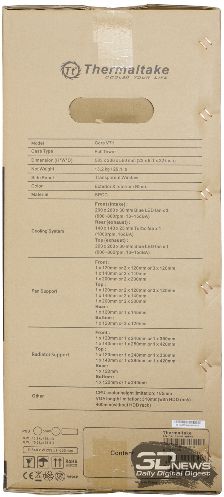 Обзор корпуса Thermaltake Core V71: большой конструктор