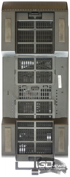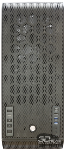 Крышка корпуса выполнена настолько же продуваемой, в ее передней части разместился интерфейсно-кнопочный блок. Единственный недостаток подобной реализации — отсутствие места под различные мелочи, которые иногда хотелось бы иметь под рукой.