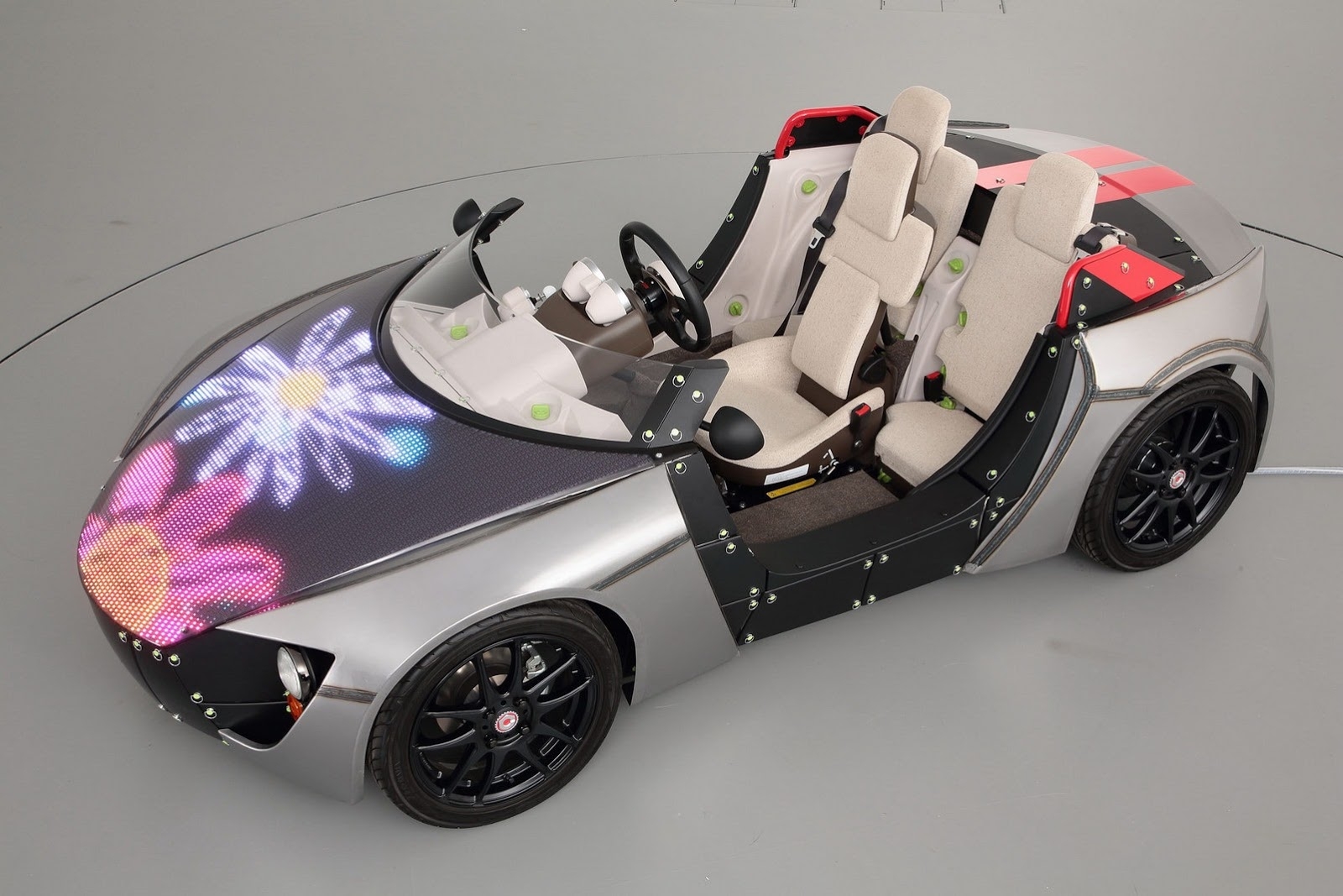 Год назад на Международной выставке игрушек Toyota представила концепт Camatte57s. Идея заключается в создании компактного электрического автомобиля, который частично сможет собрать ребенок. Конструктор состоит из 57 навесных элементов: их можно менять для обновления внешнего вида транспортного средства, при этом детям не позволят вмешиваться в техническую часть. Для игрушечного шоу 2014 года японцы подготовили обновленную версию этой модели — Camatte Sport LED Concept.
